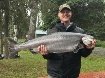 I had the good fortune to catch and release one King Salmon (estimated at 40 pounds) while catching and harvesting another, weighing an estimated 30+ pounds. (On the Kenai River, there is a daily limit of one King Salmon–and a seasonal limit of two.) The King Salmon as you might guess is the most sought after of all salmon, not only because of its size, but because of the oil levels and quality of meat. I can personally attest, it makes a scrumptious meal!